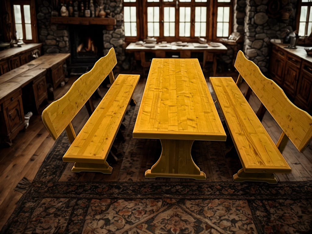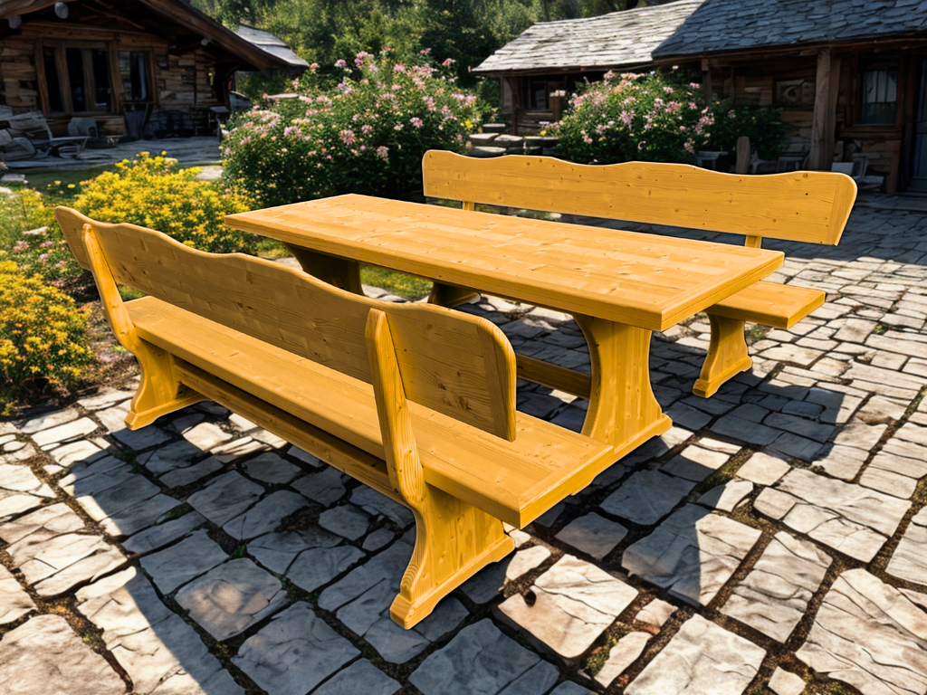Mit einer Tischlänge von ca. 150 cm bis 300 cm bietet diese Gruppe bequem Platz für bis zu zwölf Personen und wird so zum Mittelpunkt jeder Terrasse, Gartenlaube oder Almhütte. Die Sitzgruppe ist ideal für den Innenbereich oder geschützte Außenbereiche geeignet, wo sie über viele Jahre ihren natürlichen Glanz bewahrt.