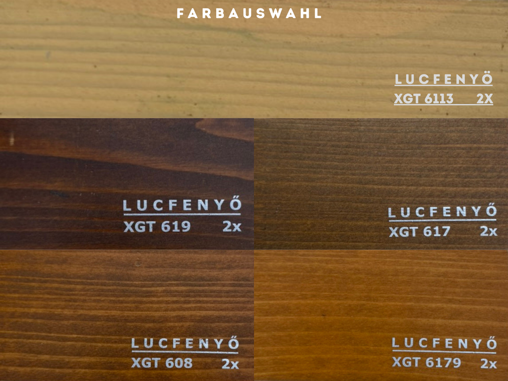 Jedes Detail ist solide gearbeitet: Materialstärke ca. 60 mm, stabile Zapfenverbindungen und eine sorgfältig geschliffene Oberfläche garantieren Langlebigkeit. Die Farbgestaltung kann individuell aus der angezeigten Auswahl gewählt werden – Sonderfarben oder abweichende Maße sind auf Anfrage ebenfalls möglich.