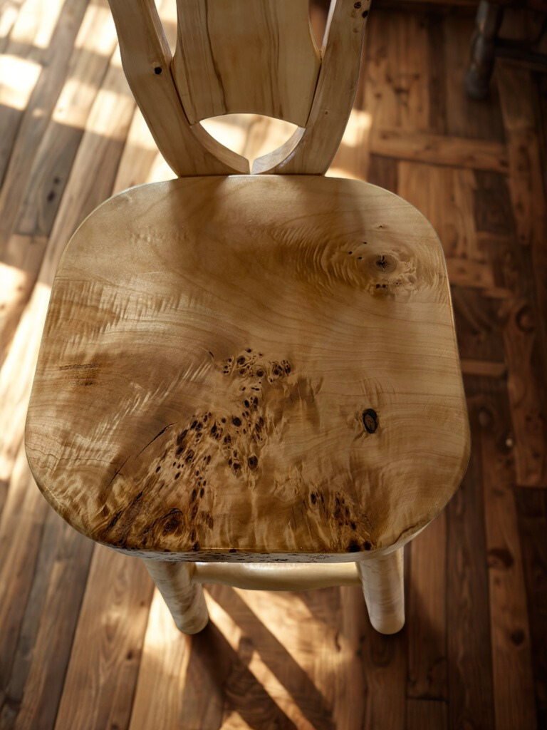 Jeder Barhocker wird in sorgfältiger Handarbeit in Schreinerqualität gefertigt. Jedes Stück ist ein Unikat: Das ca. 6 cm starke Massivholz zeigt natürliche Aststrukturen und Maserungen, die jedes Möbelstück unverwechselbar machen.