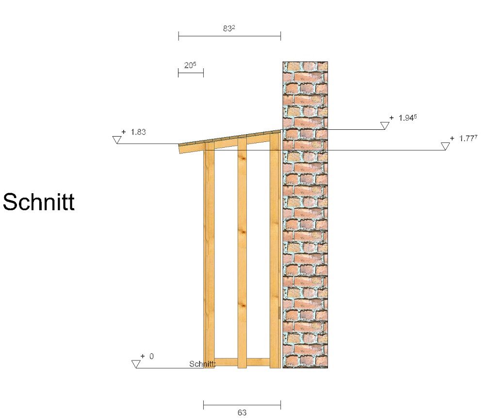 - Dachüberstand: vorne 20 cm, seitlich 20 cm